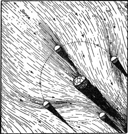 Nun wird behauptet, daß die mit lautem Krachen unter Feuererscheinungen und Ausstreuen eines Hagels von mineralischen oder metallischen Bruchstücken zur Erde niedergehenden Fremdkörper richtige Meteore seien, daß die den Nachthimmel durchhuschenden, einzelnen und zu bestimmten Zeiten in größeren Massen auftretenden leuchtenden Eindringlinge auch Meteore, aber kleinere seien; nur weil sie, ohne die Erde zu erreichen, in der Luft spurlos verdampfen, verdienten sie einen anspruchsloseren Namen, deshalb wurden sie Sternschnuppen genannt. Diese Ansicht, besonders im Hinblick auf die vermutete Kleinheit, ist aber falsch, denn die Sternschnuppen sind ganz etwas anderes als die Meteore; sie sind ziemlich große Körper aus purem Eise und erscheinen uns nicht deshalb leuchtend, weil sie durch Reibung in dem Luftmantel der Erde heiß und glühend werden, sondern weil sie, wie der Mond, die Venus und die anderen Planeten, im reflektierten Sonnenlichte leuchten, und zwar weit außerhalb jeder Berührungsmöglichkeit mit der irdischen Atmosphäre. Diese Behauptung ist so überraschend, daß sie zuerst Verwunderung auslösen muß; bei näherer Betrachtung gewinnt sie aber eine durchschlagende Beweiskraft. Ohne uns vorläufig um die