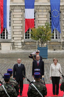 Merkel vor dem Elysee Palast willkommen."